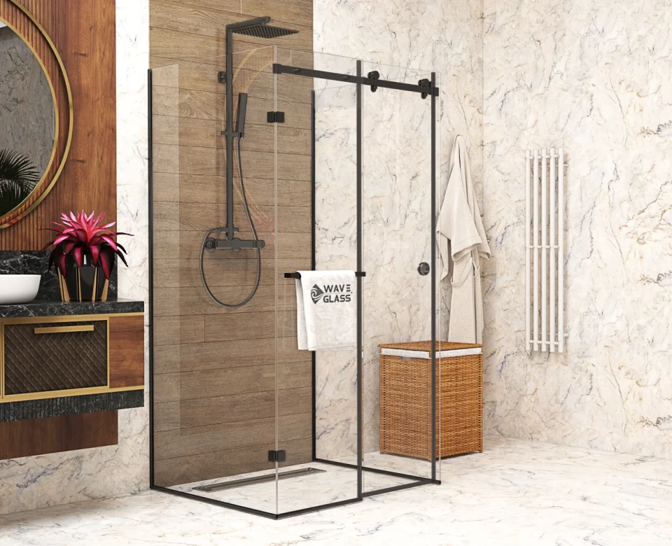 Стильна душова кабіна LILY у сучасному мінімалістичному дизайні, що поєднує прозоре загартоване скло та чорну фурнітуру. Конструкція виглядає легкою й акуратною, візуально не перевантажує простір та добре пасує до сучасних інтер’єрів. Розсувні двері забезпечують зручне користування, а якісні матеріали додають надійності та довговічності.