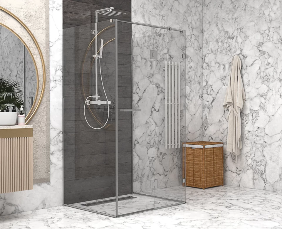За бажанням ви можете додатково замовити захисне покриття для скла вашої душової кабіни, яке створює прозорий бар’єр на поверхні. Воно помітно зменшує поява потьоків, крапель води та вапняного нальоту, завдяки чому скло довше залишається чистим і охайним.